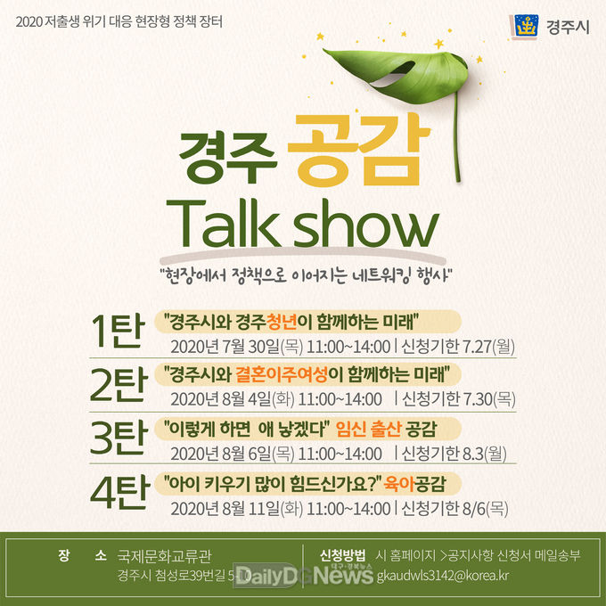 경주시 저 출생 위기 대응 공감 토크 쇼(Talk show) 개최 - 데일리대구경북뉴스