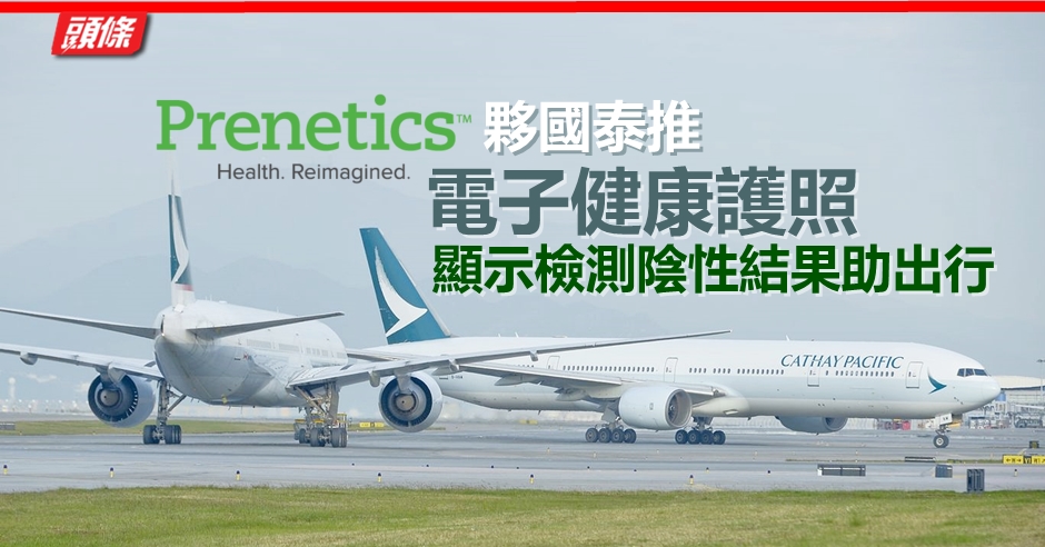 Prenetics公布,將與國泰航空及The Common Projects合作,推行全球電子健康護照先導計劃。旅客通過Prenetics進行的新型冠狀病毒快速測試,並得到呈陰性的結果,則可以於手機應用程式顯示。Prenetics預計,最快可以在今年10月在香港至倫敦希斯路機場航線試行。
